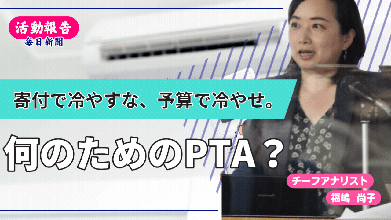 「PTAや学校は自治体に『エアコンの導入予算をつけて』と働きかけることが大切だ。そうしなければ、PTAからの寄付がない隣の学校ではエアコンが設置されないままとなり、学校間で教育環境の格差が生まれてしまう。」