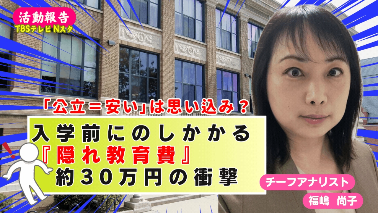 【活動報告】TBSテレビ Nスタ(2026年2月3日)|入学前に30万円?国公立高でもかかる「隠れ教育費」の実態 物価高に加え制服代高騰の背景に“多様化”の落とし穴|TBS NEWS DIG【福嶋 尚子】 活動報告 2026.02.05 著者|福嶋 尚子福嶋 尚子Shoko Fukushima千葉工業大学 工学部 教育センター社会教室 准教授教育学修士(新潟大学大学院教育学研究科)教育学博士(東京大学大学院教育学研究科)学校事務職員向け研修、市民向け講演・学習会、議員向け講演など行っていま... ■TBSテレビ Nスタ(2026年2月3日)|入学前に30万円?国公立高でもかかる「隠れ教育費」の実態 物価高に加え制服代高騰の背景に“多様化”の落とし穴|TBS NEWS DIG 出典元:TBSテレビ Nスタ(2026年2月3日)|入学前に30万円?国公立高でもかかる「隠れ教育費」の実態 物価高に加え制服代高騰の背景に“多様化”の落とし穴|TBS NEWS DIG この記事が「参考になった!」と感じたら、周りの人に紹介したり、下記の「❤️(いいね!)」や「コメント」をしてもらえると嬉しいです♪ #ハッシュタグ Youtube, チーフアナリスト, 動画あり, 活動報告, 福嶋尚子, 隠れ教育費全般